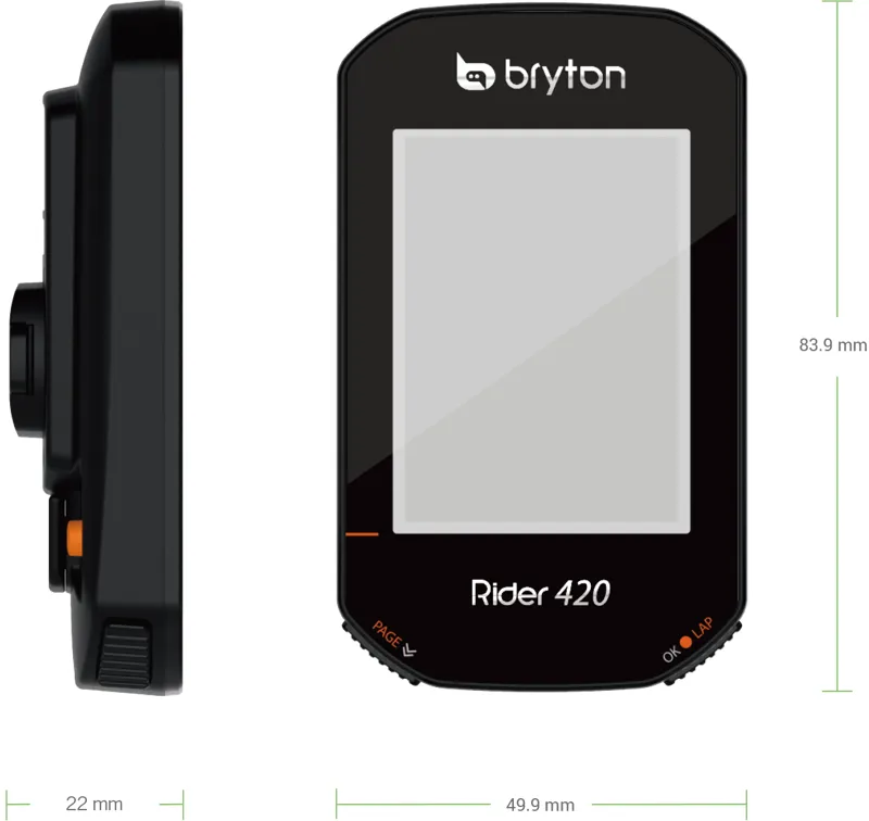 If you’re looking for a fully-featured, simple to use GPS bike computer, then look no further than the Rider 420. With its Bluetooth & ANT+ wireless connectivity, the Rider420 will pair with all major electronic shifting systems from Shimano Di2, Sram Etap/AXS & Campagnolo EPS to clearly show gearing information and battery life too. Packed full of features including an advanced, high-quality 3.2inch Mono LCD (Optically clear bonded screen), the Rider 420 will also help you train hard indoors with its ANT+ FE-C function allowing you to take control of your compatible indoor trainer. Change the screen layout by simply paring with the Bryton Active app and make changes in layout instantly. With the full global GNSS, the Rider420 will work where ever you take it, be that nationally or globally. Simple to set up is the follow the track / Turn by Turn navigation to help you find your way to or from your destination. Go anywhere, do anything all with the Rider420.