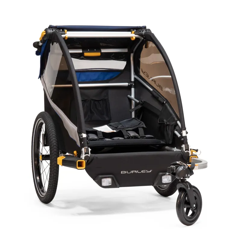 The trusted D’Lite kids bike trailer and double stroller is built for adventure, with a refined interior for superior comfort. The recline allows you to fine tune the angle of the seat with full-length UV windows for protected panoramic viewing. Premium seat pads, headrests, and adjustable suspension optimize comfort for a smooth ride. The included stroller kit adds versatility out of the box with optional conversions for sand and gravel riding, jogging, or skiing. Travel your world in style!