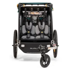 Perfect for the active family, the Encore X kids bike trailer and double stroller with suspension provides smooth rides on gravel or bumpy trails. Quickly transition from biking to strolling with the included stroller kit. Compatibility with all the Burley conversion kits opens up the option for jogging, strolling, or skiing adventures. The Encore X features seat pads, tinted side and rear windows with UV protection, and a sunshade for bright days. Explore the road less traveled with your little ones comfortably in tow!