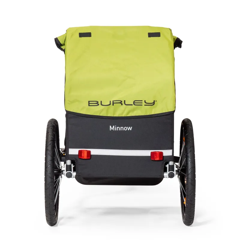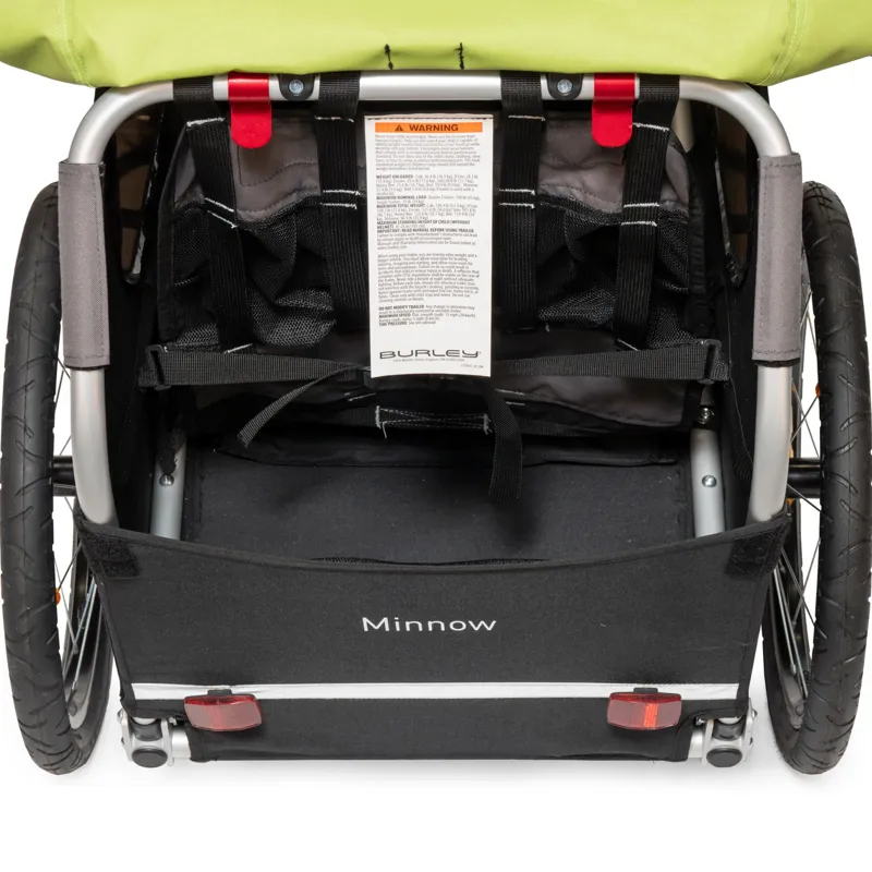The Burley Minnow is a single seat kids bike trailer. Upholding the Burley Standard for safety, the Minnow has: a full aluminum roll cage, 5-point harness system and passes rigorous Burley Standard durability testing. It has a comfortable hammock style seat, fold flat design, water-resistant cover, and large cargo area. The Minnow is a bike only trailer. If you are looking for a quality trailer with all the essentials the Minnow is for you.