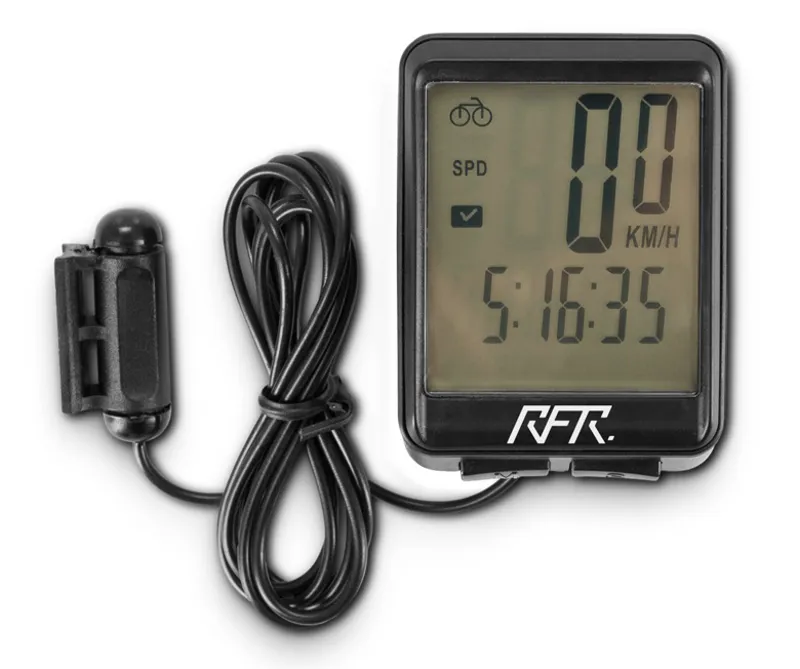 Bike computer with 12 practical functions, backlight, stopwatch and automatic on/off.