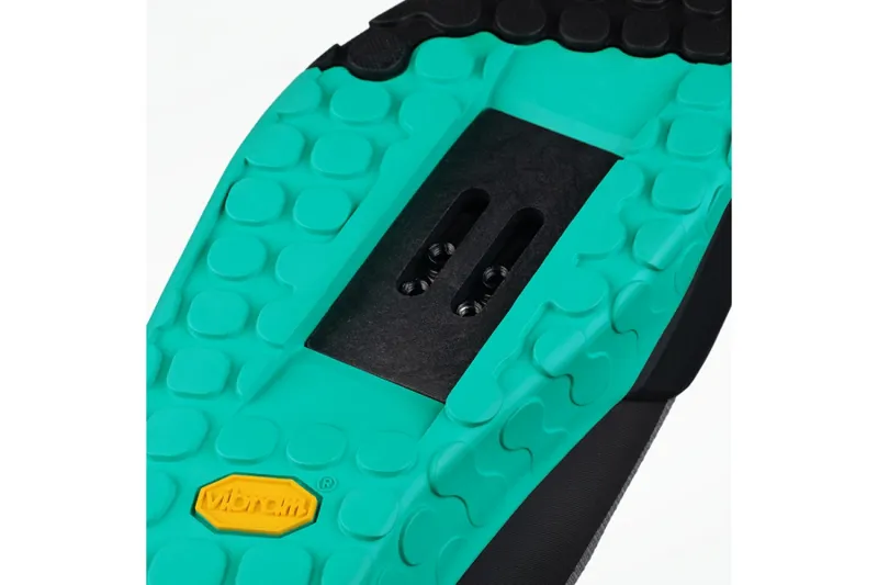 Let’s start with the outsole. Together with your hands on the handlebar, feet are a crucial point of contact when it comes to bike control. The Gravita outsole provides the type of shoe-to-pedal interface you need for fast and aggressive gravity riding, combining the stickiest Vibram® Megagrip rubber compound with a specific zonal lug pattern. A low-profile tapered tread pattern positioned at the mid-foot allows for an immediate connection and optimal mechanical interface with the pedal pins, while under the heel and toes, a deeper, sharper tread provides better ground traction when hiking back up the hill.