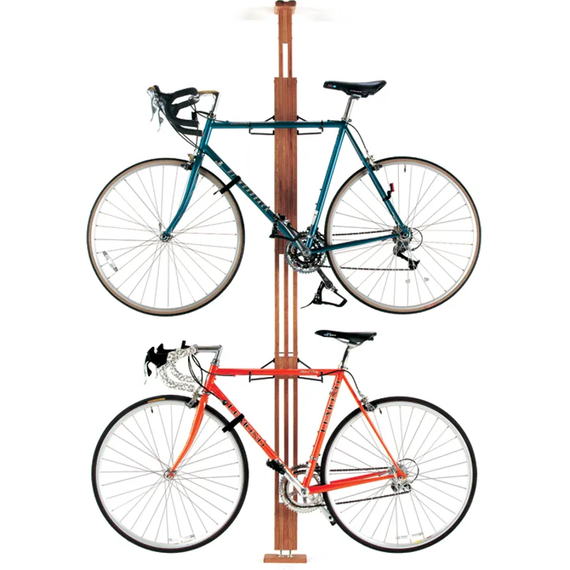 A good looking floor-to-ceiling bike rack that carries two bikes as standard
