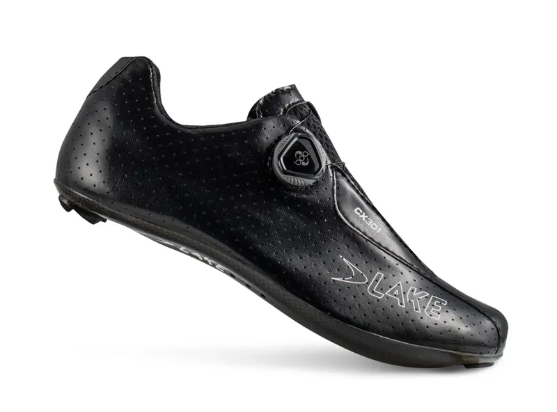 Designed for higher cadence and pressure riding. Features more curved profile and increased toe pitch and heel lift. The shoe is finished with a Carbon Fibre sole and features Lakes BOA fitting.