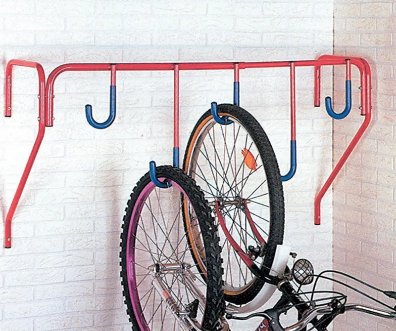 - Plastic covered hooks protect bikes from scratches