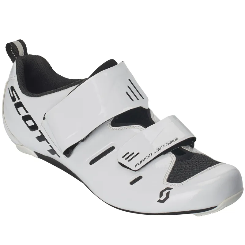 Built for elite triathletes who want to dominate the bike split, the SCOTT Tri Pro shoe will get you through the bike leg with maximum speed and deliver a rapid transition. With its tongue-less construction adaptive fit pattern the shoe is easy to get into and comfortable to wear. The shoe features a wide up-pull canopy strap and lower strap that can articulate to adapt to the shape of the foot. The ErgoLogic insole features an adjustable arch support and metatarsal button. The injection nylon glass fiber sole has an increased range of cleat adjustment with a stiffness index of 7.